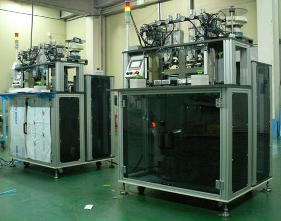 A facility that fixes the DAMPER by automatically performing CAULKING on the magnet YOKE part of the recording lever of the hard disk